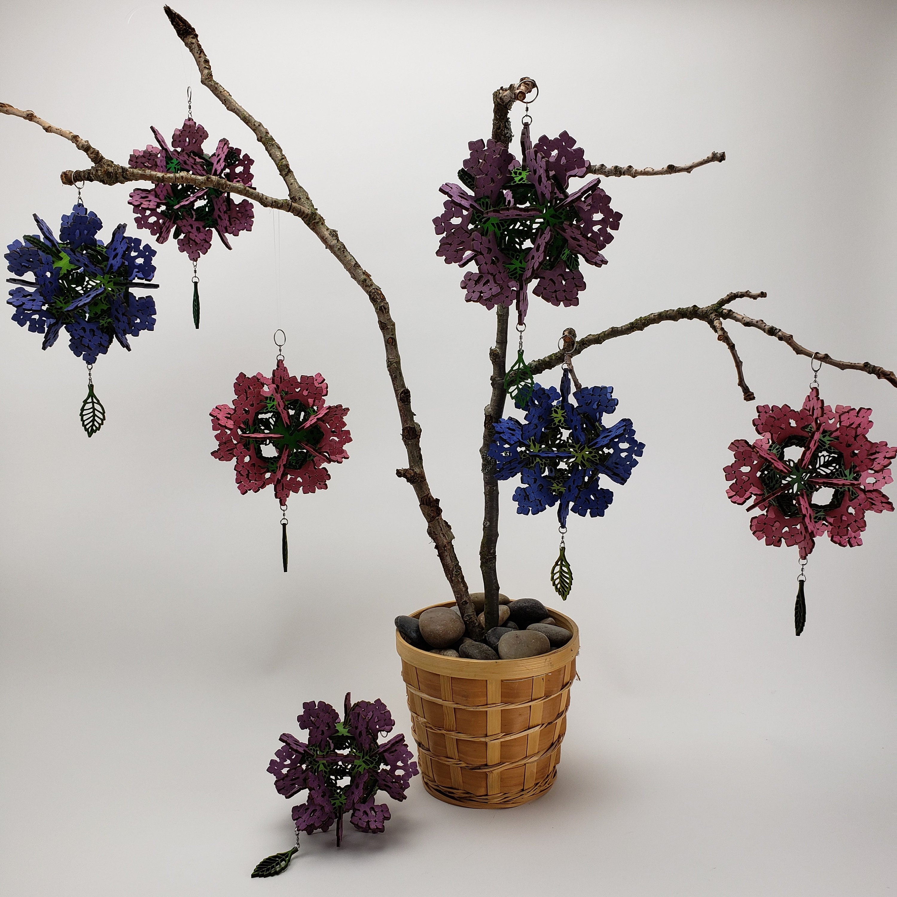 Each dodecahedron ornament comes with swivel rings for easy hanging and a dangling leaf at the bottom for added movement and interest.