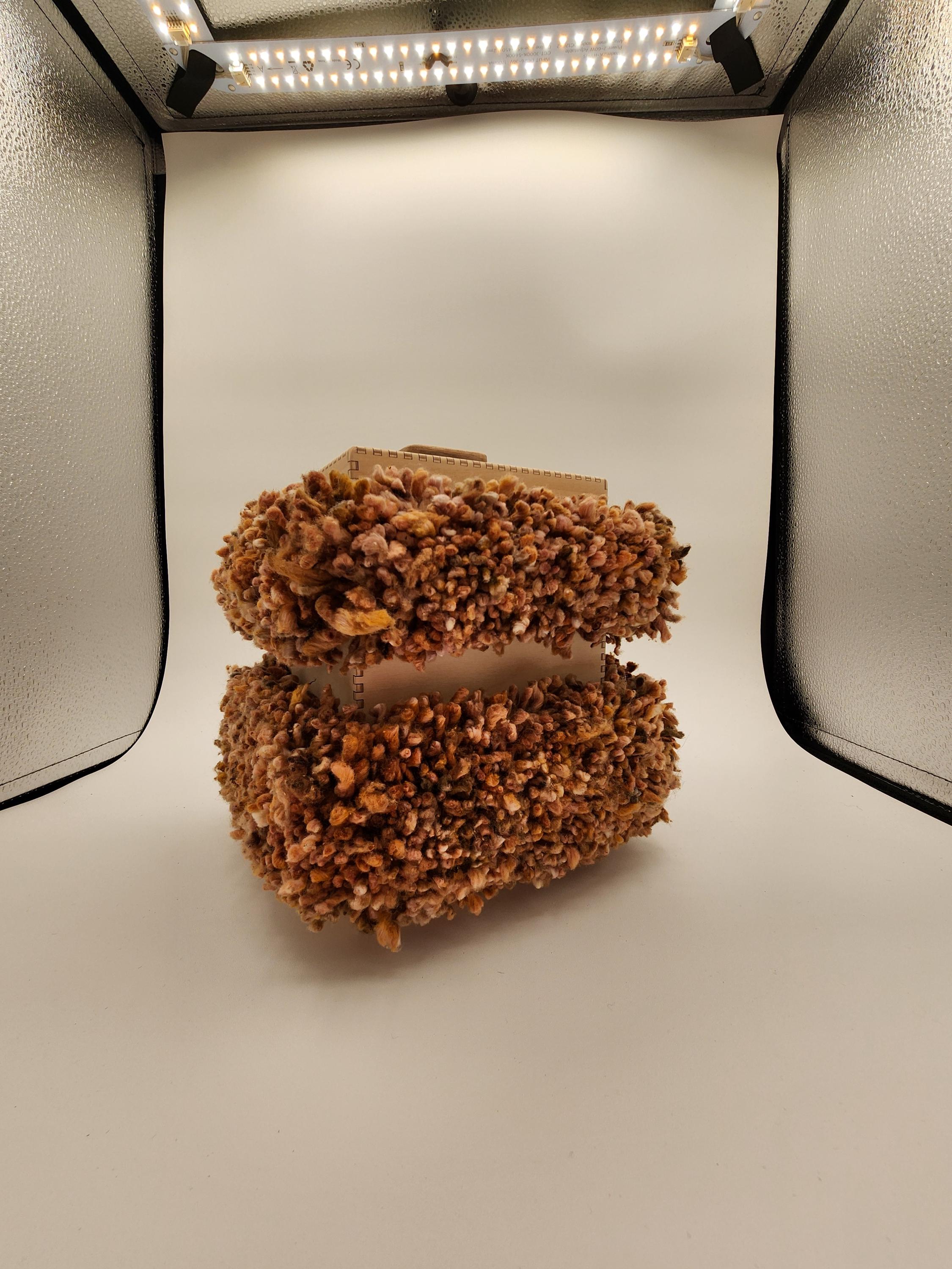 This puffy monster of a box is made of birch plywood with densely hand tufted cotton "fur." This is a unique item signed by the artist.